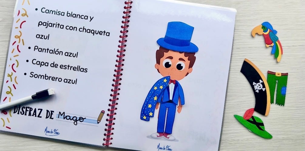 Hoy os presento un cuaderno de disfraces de Carnaval, en el que podrán vestir a distintos niños y niñas con disfraces variados, fomentando el juego simbólico, la creatividad y la discriminación visual.