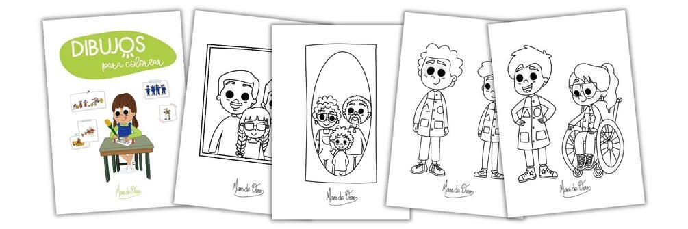 Libro para colorear sobre los libros de los personajes de Mis increíbles vecinos y Mis increíbles compañeros.